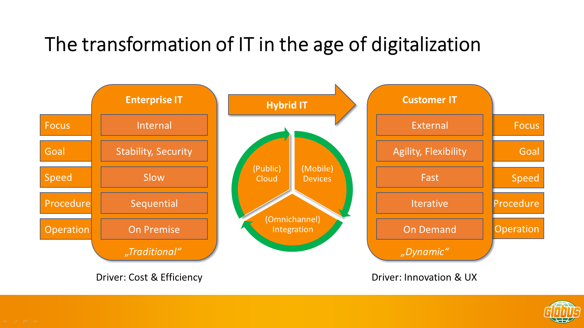 Traditional IT is optimized for cost efficiency and operational optimization. "Customer IT", on the other hand, must be focused on innovation and customer experience.
